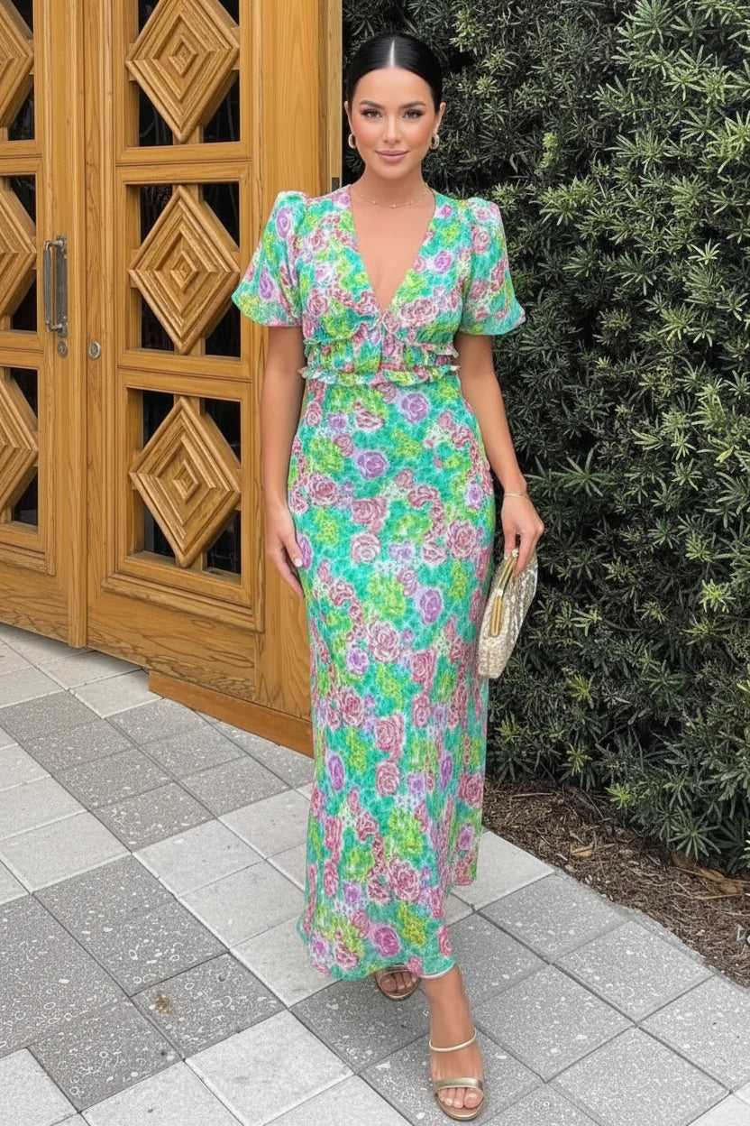 Embrace elegance with the Floral Print V-Neck Puff Sleeve Midi Dress! Its charming floral design and flattering v-neckline create a stunning silhouette that enhances your natural beauty. The playful puff sleeves add a touch of femininity, making this dress perfect for any occasion. Experience the joy of wearing a dress that truly reflects your vibrant spirit!