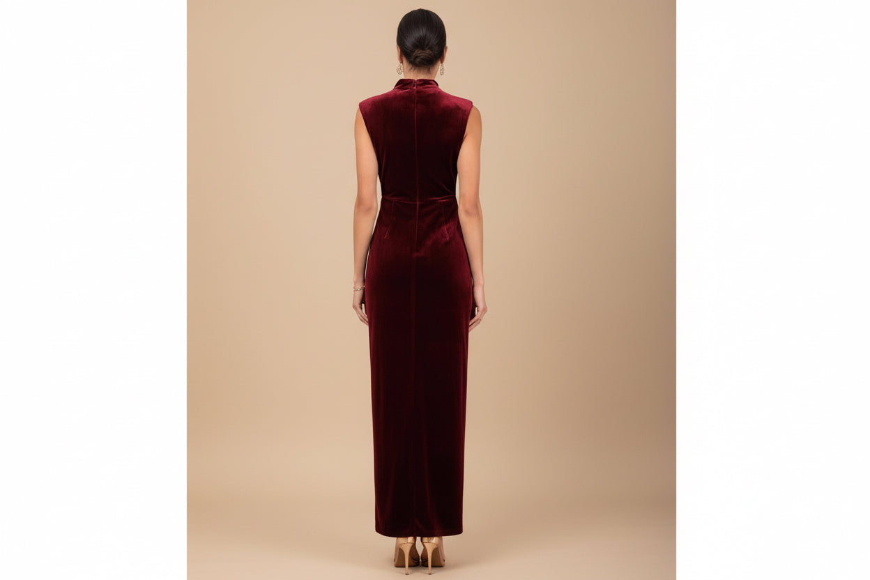 Wine Velvet High-Neck Maxi