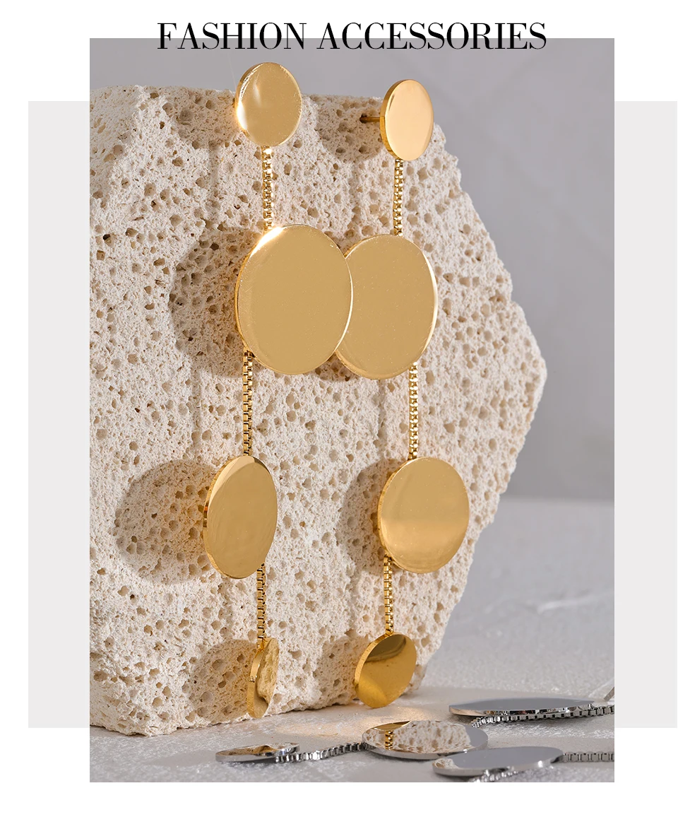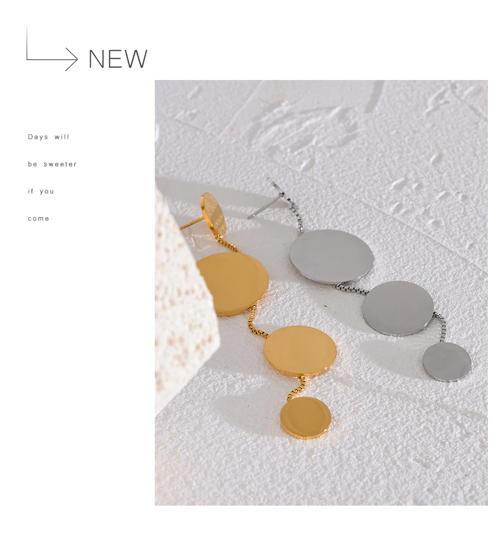 Stainless Steel Round Chain Drop Earrings